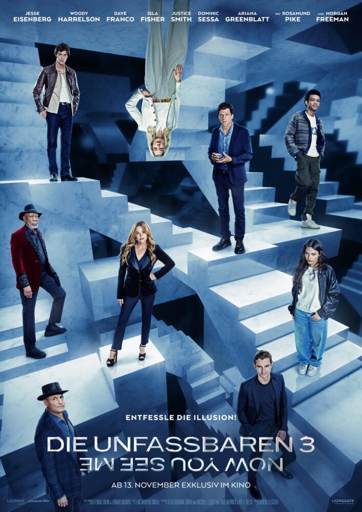 Die trickreichen Profi-Illusionisten kehren mit einem grandiosen neuen Stunt zurück! Action-Spezialist Ruben Fleischer („Uncharted“, „Venom“) inszeniert das Ensemble rund um Jesse Eisenberg („The Social Network“), Woody Harrelson („Venom – Let There Be Carnage“), Isla Fisher („Die Hochzeits-Crasher“) und Dave Franco („Bad Neighbors“), das sich mit seinen besonderen Fähigkeiten in ein überraschendes und hochspannendes neues Abenteuer katapultiert. Ebenfalls wieder mit dabei im magischen Action-Coup sind Schauspielikone Morgan Freeman („The Dark Knight“). Neu im Cast ist Rosamund Pike („Gone Girl – Das perfekte Opfer“). Das Illusionisten-Team erhält frischen Wind durch Ariana Greenblatt („Barbie“), Justice Smith („Jurassic World: Ein neues Zeitalter“) und Dominic Sessa („The Holdovers“).