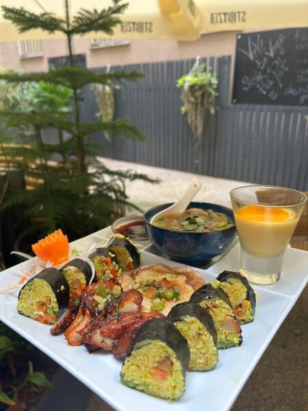 Mitten im 7. Bezirk bringt Vevi vietnamesische Aromen auf den Tisch – modern interpretiert und konsequent pflanzlich. Hier duftet es nach frischen Kräutern, würzigen Brühen und hausgemachten Saucen, während Klassiker und neue Ideen ganz ohne tierische Zutaten serviert werden. Besonders beliebt sind die veganen Sushi-Kreationen, die beweisen, dass Sushi auch ohne Fisch voller Geschmack und Raffinesse steckt. Ein weiteres Highlight ist der vegane Hotpot – perfekt zum Teilen, Entdecken und gemeinsamen Genießen.
